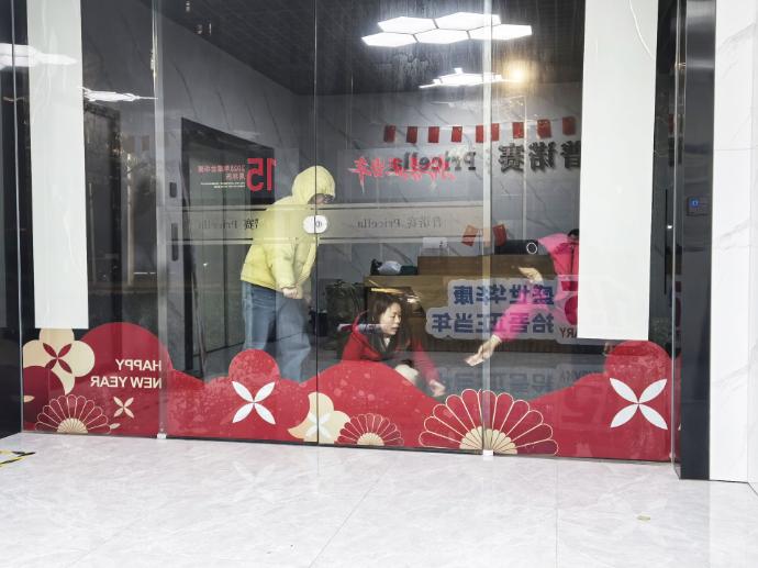 周六一早,同事们便开始了有序的准备工作。粘贴象征喜悦的“周年蛋糕”,悬挂印制着祝福的吊旗、拼装带有文化IP形象的拍照框,张贴精心设计的主题玻璃贴……尽管是首次尝试如此全面的氛围布置,但在轻松协作、互相补位的氛围中,每一项任务都顺利推进。很快,前台、楼梯、办公区等角落,都被这些带有十五周年独特标识的装饰所点亮,节日的仪式感扑面而来。