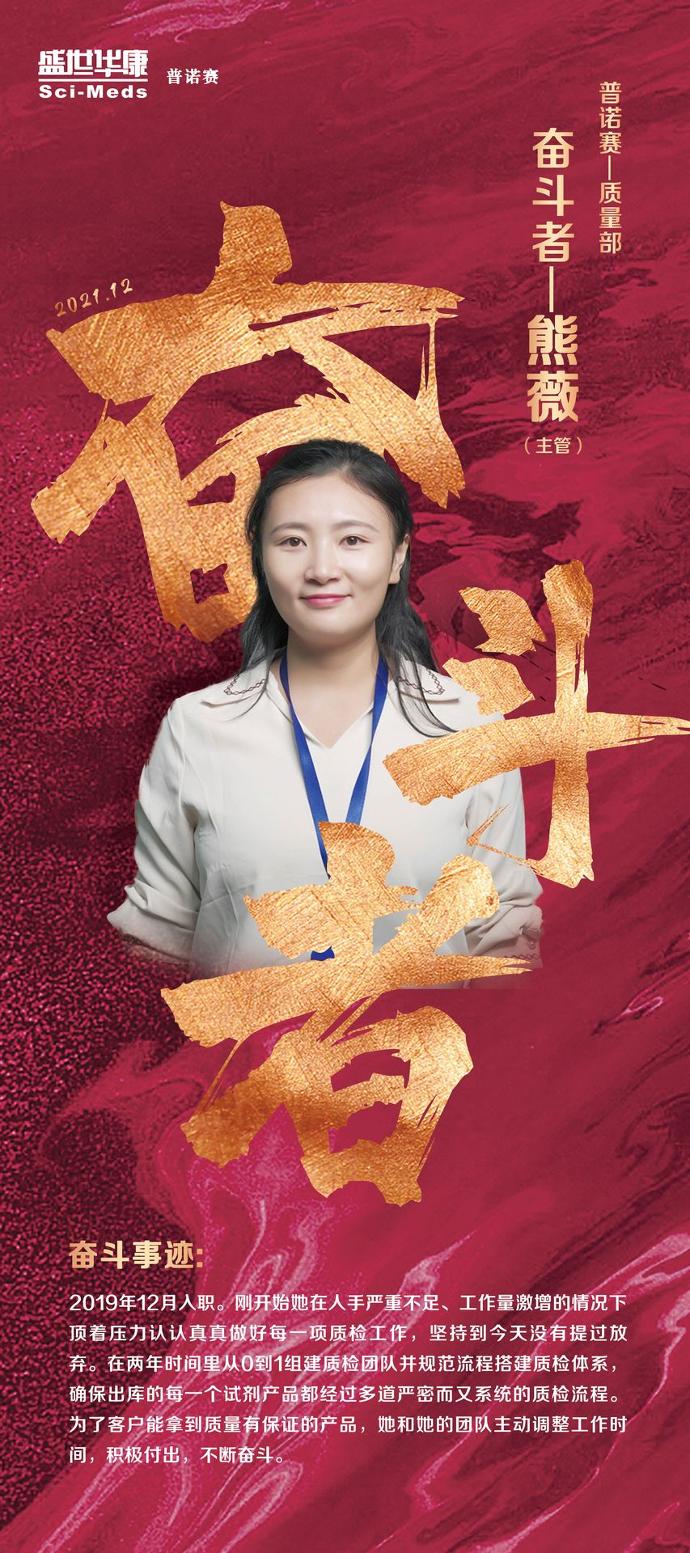 能够得到公司授予的“奋斗者”称号真的是2021年最最最最最幸运的事。感谢冷总、吴总的信任,感谢吴总、尚部长的提名,谢谢各位同事的认可。这不光是我一个人的荣誉,更是各位领导对于我们整个部门精诚协作的认可。这是一份荣誉、也是一份责任,我将带着这一份责任,不忘初心和盛世华康、普诺赛一起成长。