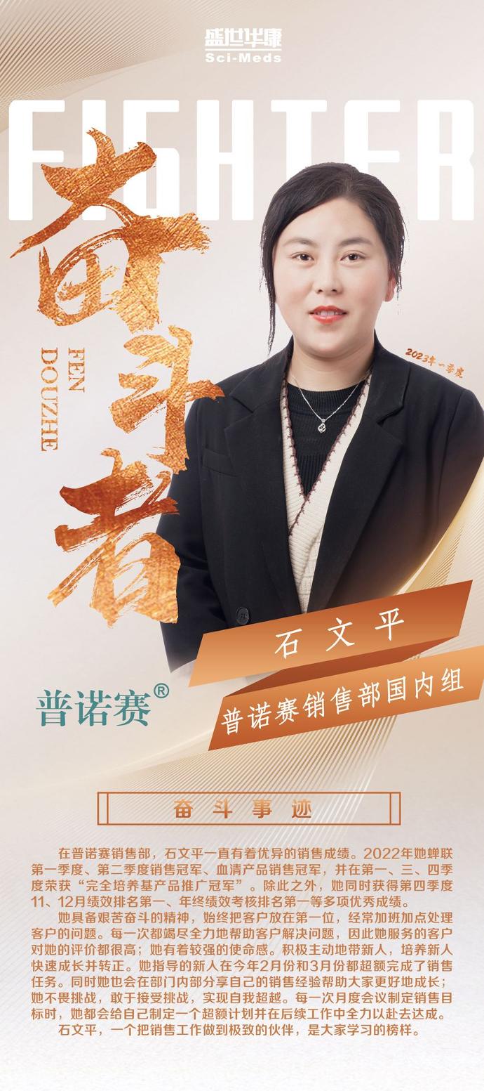 2022年第一季度销售冠军、血清推广冠军,完培推广冠军;第二季度销售冠军、血清推广冠军,第三季度、第四季度完培推广冠军;