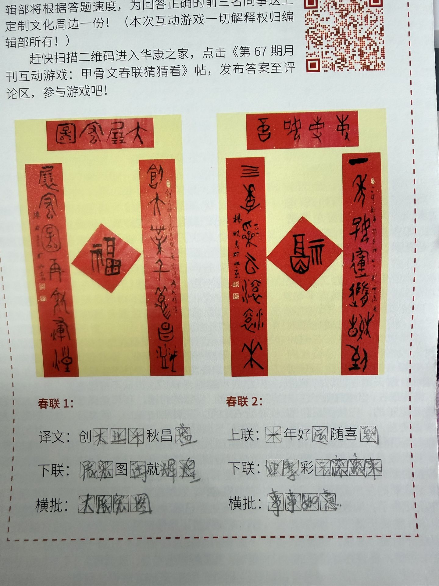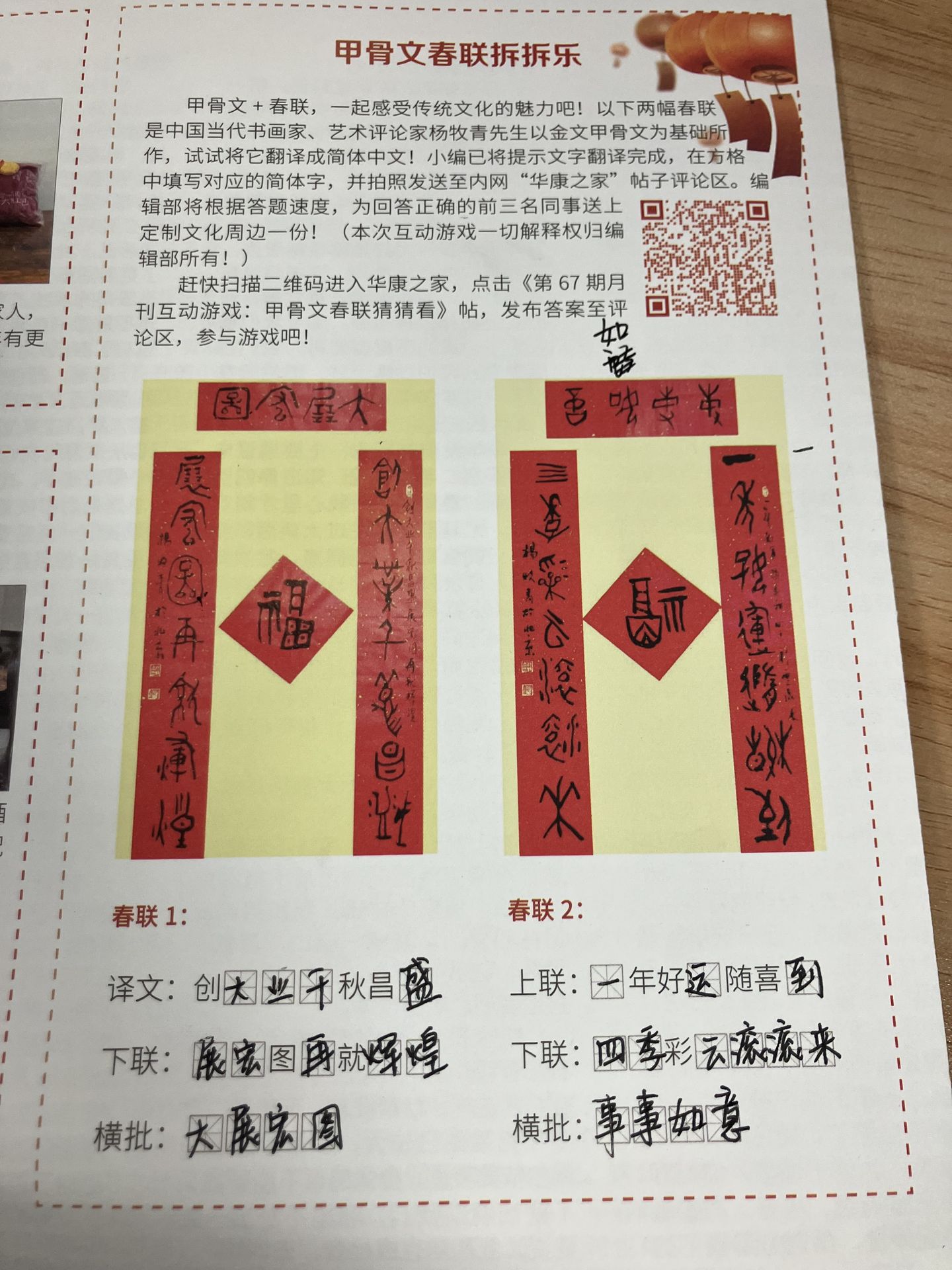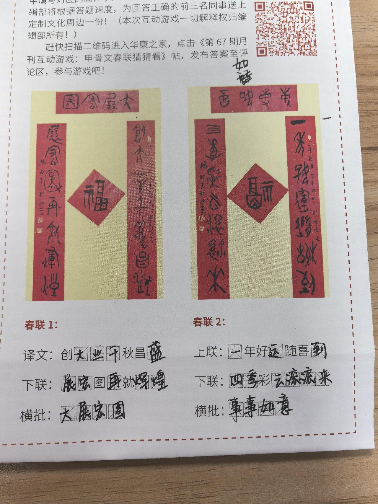 ps:纸质月报春联2,提示词【 喜 】改为【 春 】