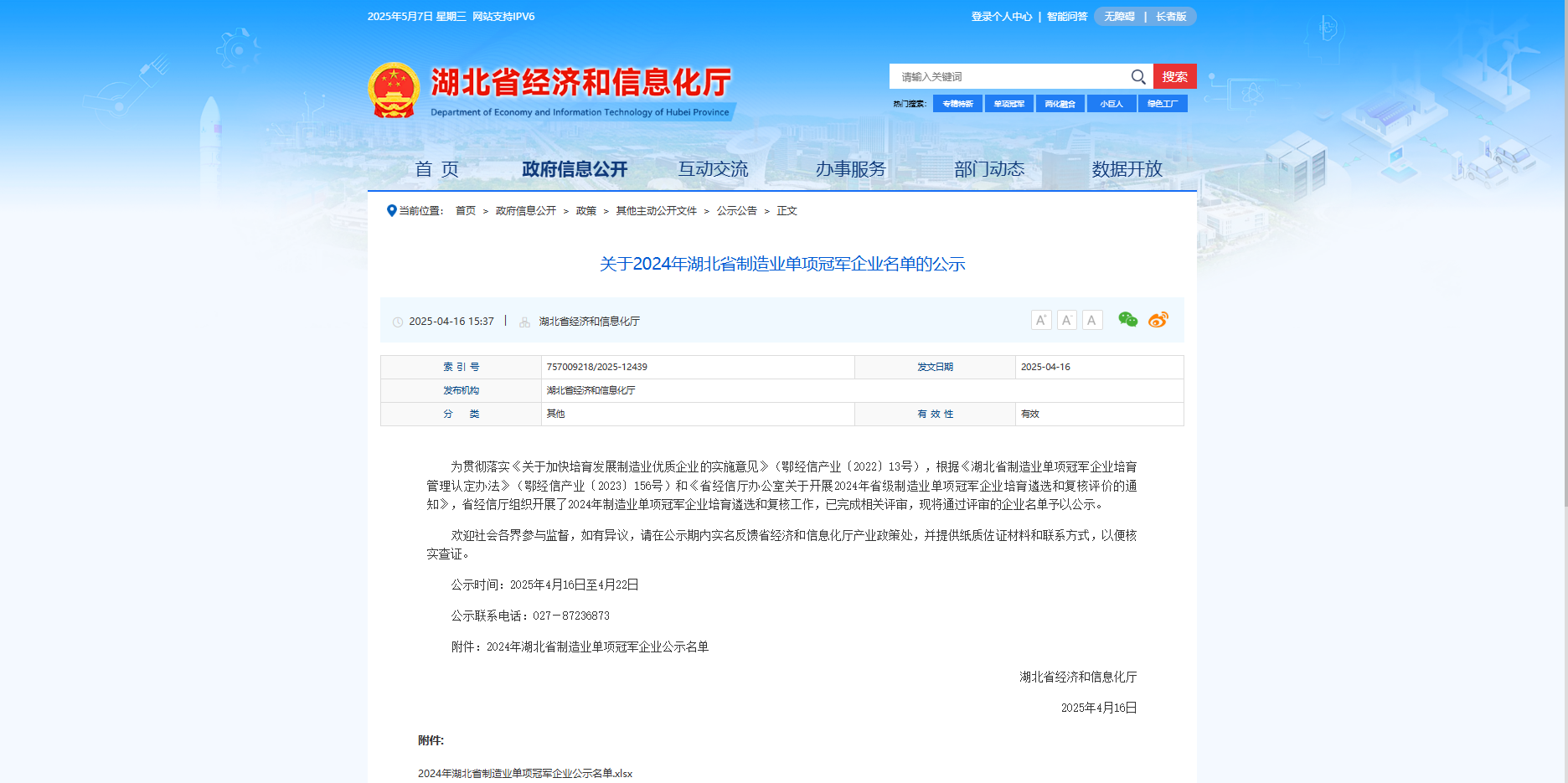 4月16日,湖北省经济和信息化厅公示了2024年湖北省“制造业单项冠军企业”名单,武汉伊莱瑞特成功入选“制造业单项冠军企业”名录。