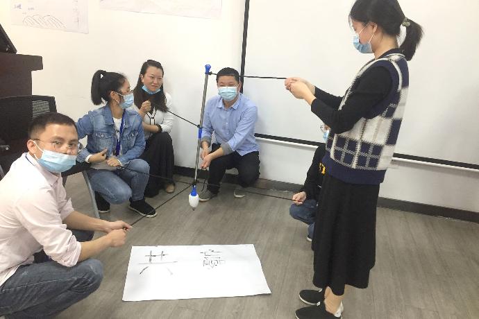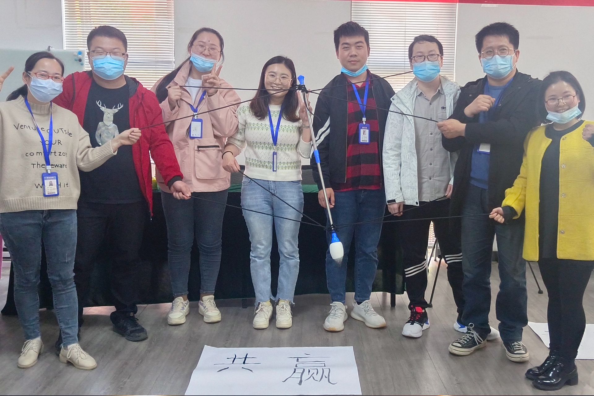 团队游戏“合力共赢”要求团队伙伴每人拿一根绳子和一只毛笔,绳子一头系在毛笔上,另一头拿在团队成员手中,团队所有成员需要一起在白纸上写出“共赢”二字。这个环节就考验我们基层管理者们的组织、协调、合作、领导力、目标感、流程感等能力。在游戏中,很多伙伴的目标感和流程感非常棒,有小组为了更好、更快、更高效地完成,提前做好明确分工,还有的小组把“共赢”二字用草稿的方式提前写在纸上做为引导,让大家更明确每一步怎么做,有的小组甚至能快速地做出流程图,并明确分工快速完成任务,整个过程井然有序且完成度高。团队游戏的环节体现出我们基层管理者非常不错的基层管理能力,而且游戏最后呈现的结果也是高于我们的预期,真的是非常棒!