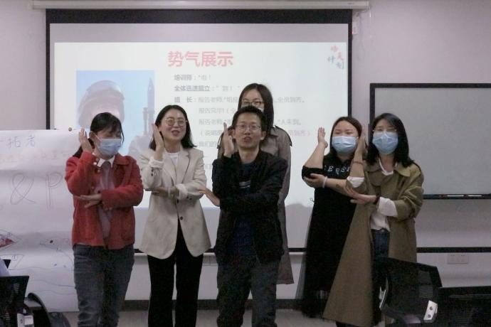 团队组建完毕后,就进入到团队展示环节,每位组长为了让自己的小团队率先展示争夺更多积分都抢着上台,那一瞬间现场氛围真的是十分火爆。