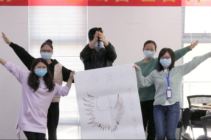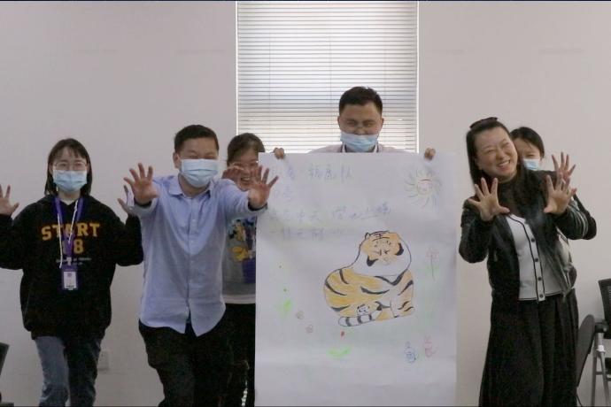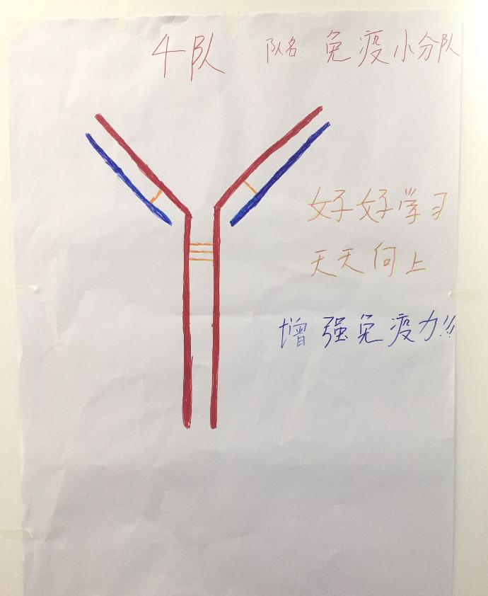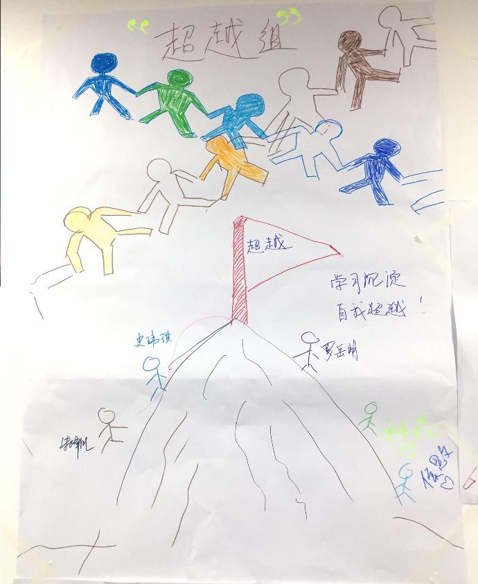 开营第一件事,我们将参训的37名小伙伴按子公司、部门、工作内容和性质分成了6个小组,并由小组内部推选出各组的小组长,小组长带领着各组成员们共创小组的组名、口号、海报和独有的团队展示造型。整个培训现场氛围异常地活跃,每个小组的伙伴都分工明确,有的负责画海报,有的负责创意口号,有的组织造型展示……大家纷纷参与出谋划策。很多伙伴展现出与工作状态形成反差的一面,让身边的伙伴们都很惊讶,比如来自ELISA蛋白抗体事业部、实验室管理部、系统开发部的小伙伴们一反工作中的严肃状态,活跃地参与并融入到整个活动中。