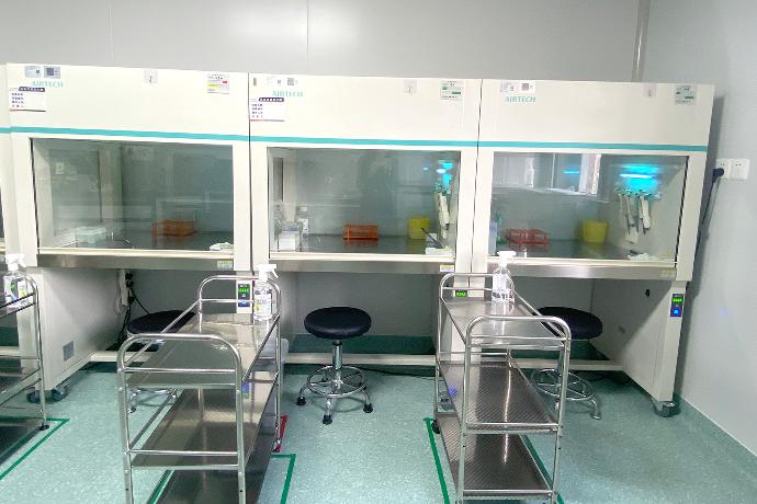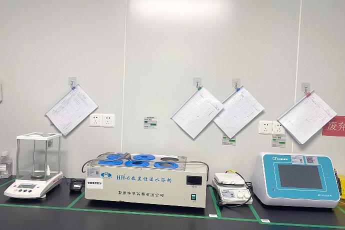 接下来我们一起走进普诺赛实验室,你会闻到84消毒液或是新洁尔灭亦或是臭氧特有的“清新”,瞬间提神醒脑。最先映入眼帘的是排列整齐的生产设备与检验设备,还有窗明几净的操作台与标识清晰的6S管理。设备维护记录本上密密麻麻的签名记载着普诺赛无数个脚踏实地的岁月,实验服按工序分区存放。这些看似繁琐却又细小的细节,实则是对客户交付的每一滴试剂、每一株细胞的郑重承诺。