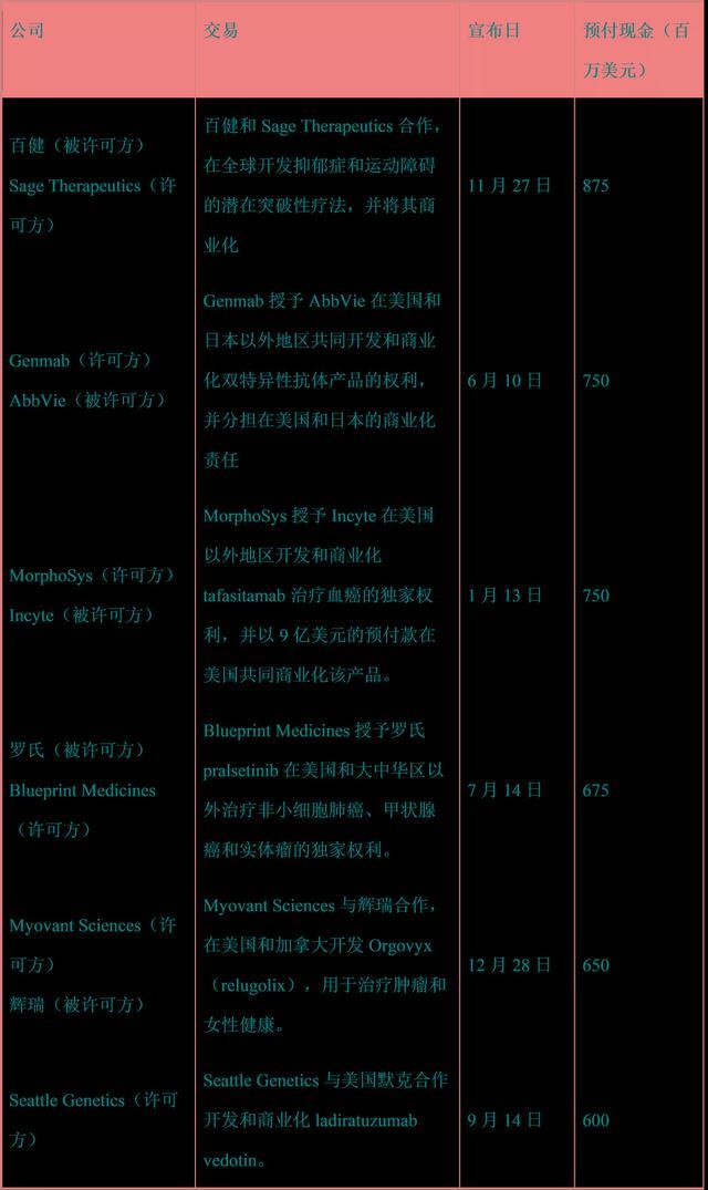 2021 年的授权交易看起来更加“阔绰”。2021 年 2 月,诺华公司支付给百济神州公司 6.5 亿美元的预付资金,购买了 tislelizumab(一种针对 PD-1 的人源化 IgG4 单抗)在美国、欧洲和日本的权利。